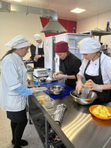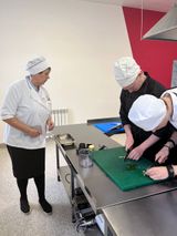 В рамках проведения недели по специальности «Поварское и кондитерское дело» сегодня, 19.10.2022 проведен открытый бинарный урок (теория + ЛПЗ) в 301 группе на тему «Технологический процесс приготовления блюд из рыбы с применением современных технологий» преподавателями Пахоменко Г.В. и Пыхтиной А.М. На уроке использовали бригадный метод, который дает активизировать каждого студента. При актуализации знаний были использованы активные методы опроса (анаграммы, синквейн, блиц опрос, тестовые задания 3 уровня, написать схему разделки рыбы на филе без кожи и костей-убери лишнее). При приготовлении блюд из рыбы, студенты применяли современные методы тепловой обработки, такие как: сотирование, папильот, бен-мари, су-вид.