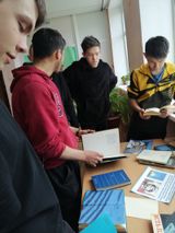 В День космонавтики с целью формирования и закрепления знаний студентов о космосе, вселенной, планетах провели квест-игру: «Окно в Космос" среди студентов 1 курса. Ребята прошли 5 "космических" станций: "Планеты Солнечной системы" (по картинкам угадывали планеты), "Звездный атлас" (находили фамилии известных космических деятелей в книгах), "Космическая зарядка" (выполняли упражнения, связанные с космосом), "Тайны галактики" (находили зашифрованные слова), "Песни звёзд" (угадывали по мелодии автора название песни про космос). За правильные ответы получали "слово". Из ключевых слов составили цитату Э. М. Ремарк: "В полночь Вселенная пахнет звездами". Состязание получилось необычным и увлекательным. После подсчета баллов места распределились следующим образом: 1место-112гр.,2место -110гр., 3место-114гр. Все участники получили сладкие призы.