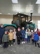 Потом ребята дружно прогулялись в мастерскую "Эксплуатации и ремонт сельскохозяйственных машин и оборудования", где особое внимание малышей заняла большая техника и возможность каждому посидеть в тракторе.