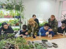 Следующая площадка удивила и детей и родителей , урожаем огурцов, помидор и зелени - салата. Во второй мастерской по профессии: "Рабочий зеленого хозяйства" встречали мастера Миронова Н.В и Фахретдинова Ю.Р. с группами 109 и 209, где показали мастер класс по пересадки рассады, петуньи и бархатцев.