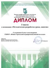 1 место в номинации "Методическая разработка урока, занятия" Сельницина Е. А.