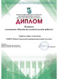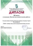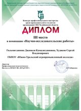 3 место в номинации "Научно- исследовательские работы" Гильмитдинова Д. К.