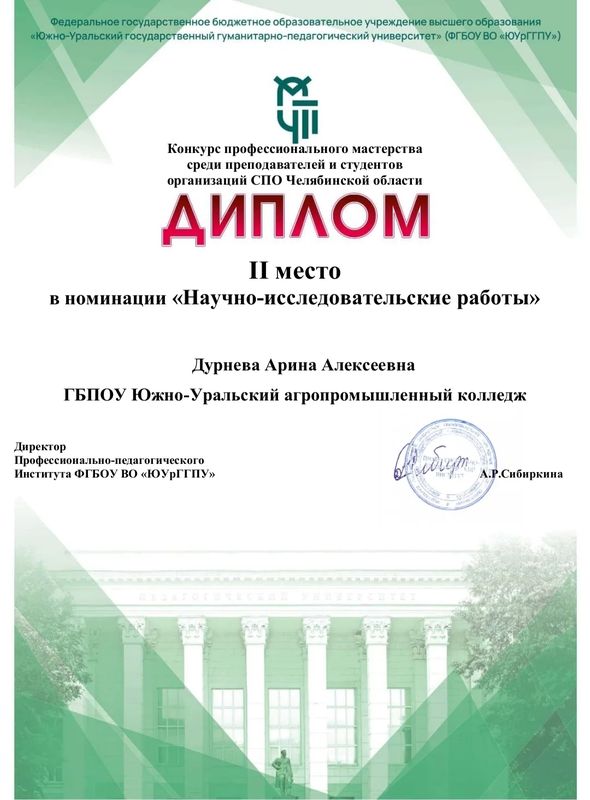 2 место в номинации "Научно- исследовательские работы" Дурнева А. А.